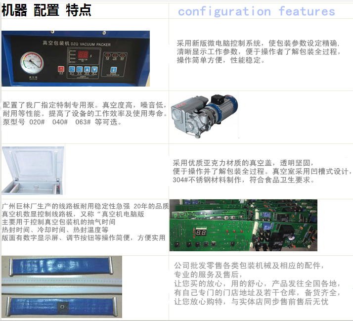 本公司擁有雄厚的技術(shù)力量,生產(chǎn)產(chǎn)品多領(lǐng)域,在真空包裝機(jī)規(guī)模最大品種最多的生產(chǎn)商。DZ系列真空機(jī)選用國內(nèi)外知名廠家,如南通、上海、德國、日本等真空泵和電器元件的不同配置。機(jī)體全不銹鋼全封閉、軸流散熱形式、耐惡劣環(huán)境長時間連續(xù)使用具有高穩(wěn)定性。是目前國內(nèi)領(lǐng)先機(jī)型,可替代進(jìn)口機(jī)型。